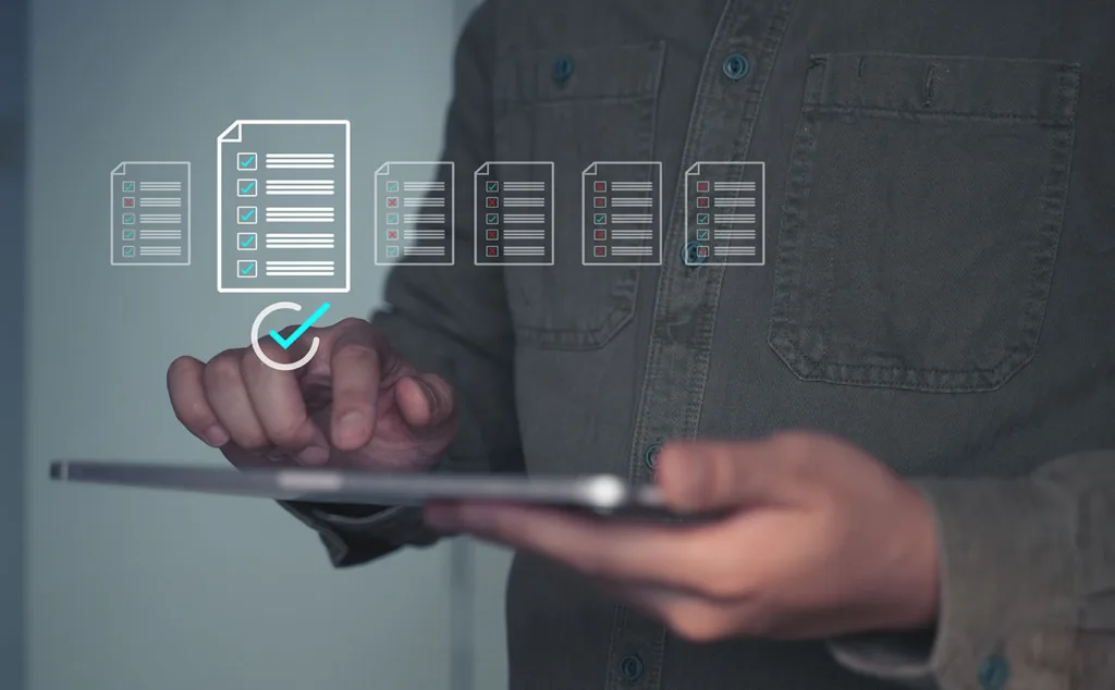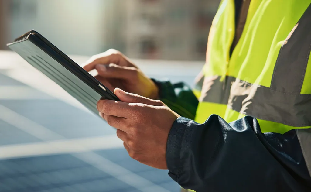 Building Management - planned and preventative maintenance - this image shows an enginner with a clipboard checking off planned maintenance tasks